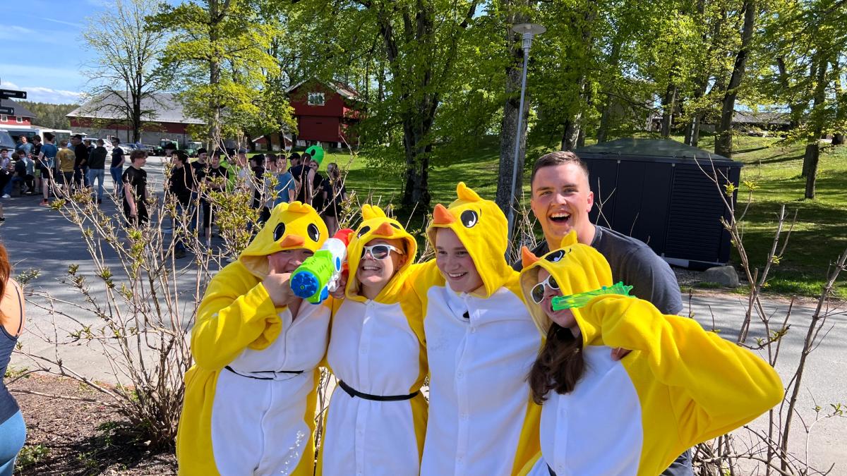 Elevrådet stod klare med drikkestasjon, og Hustvedt hadde laget spilleliste og stilte med kommentatorstemmen som alltid. Russen gjorde seg klar for å bidra med vann i løypa, og noen hadde kledd seg ut for anledningen. Elevrådet hadde innført en regel om at de som ville bli «tøyset med» i løypa, måtte ha et bånd rundt armen. Det stod godt med ansatte rundt dammen for å passe på at alle regler ble fulgt. Så kunne startskuddet gå.